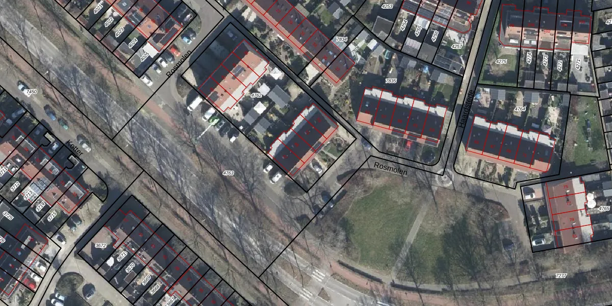 Rosmolen 49 is gelegen op kadastraal perceel WIJ01C4762. Deze kadastrale aanduiding is uniek en wordt gebruikt door het Kadaster om eigendomsrechten en andere zakelijke rechten vast te leggen. Het perceel maakt onderdeel uit van de kadastrale gemeente Wijk bij Duurstede.