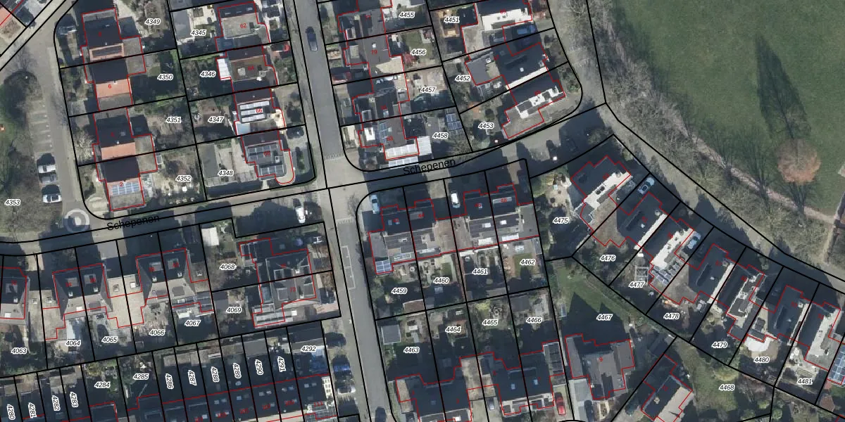 Het perceel waarop Schepenen 44 staat heeft een oppervlakte van 296 m². Dit is een middelgroot perceel. De perceeloppervlakte wordt geregistreerd door het Kadaster. Gedetailleerde informatie over de maten van dit perceel kunt u vinden in het rapport Kadastrale kaart met maatvoering van Schepenen 44.