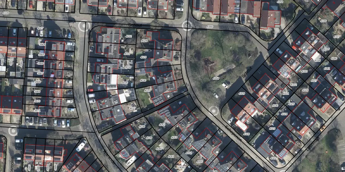 Het perceel waarop Schepenen 8 staat heeft een oppervlakte van 320 m². Dit is een groot perceel. De perceeloppervlakte wordt geregistreerd door het Kadaster. Gedetailleerde informatie over de maten van dit perceel kunt u vinden in het rapport Kadastrale kaart met maatvoering van Schepenen 8.