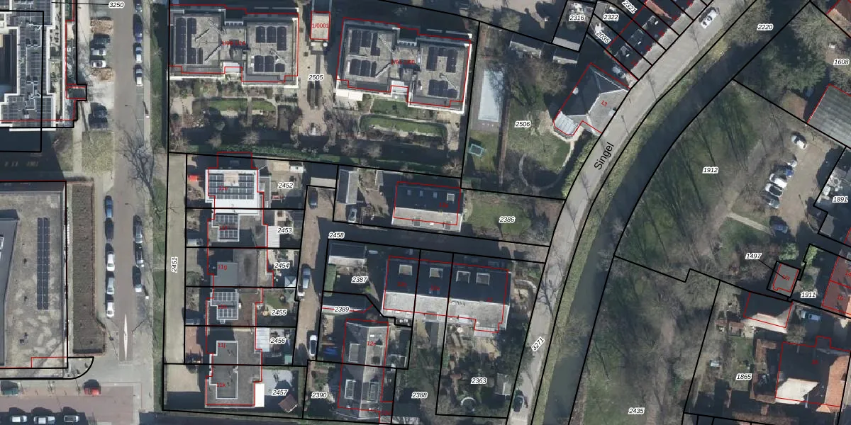 Het perceel waarop Singel 12-e staat heeft een oppervlakte van 670 m². Dit is een groot perceel. De perceeloppervlakte wordt geregistreerd door het Kadaster. Gedetailleerde informatie over de maten van dit perceel kunt u vinden in het rapport Kadastrale kaart met maatvoering van Singel 12-e.