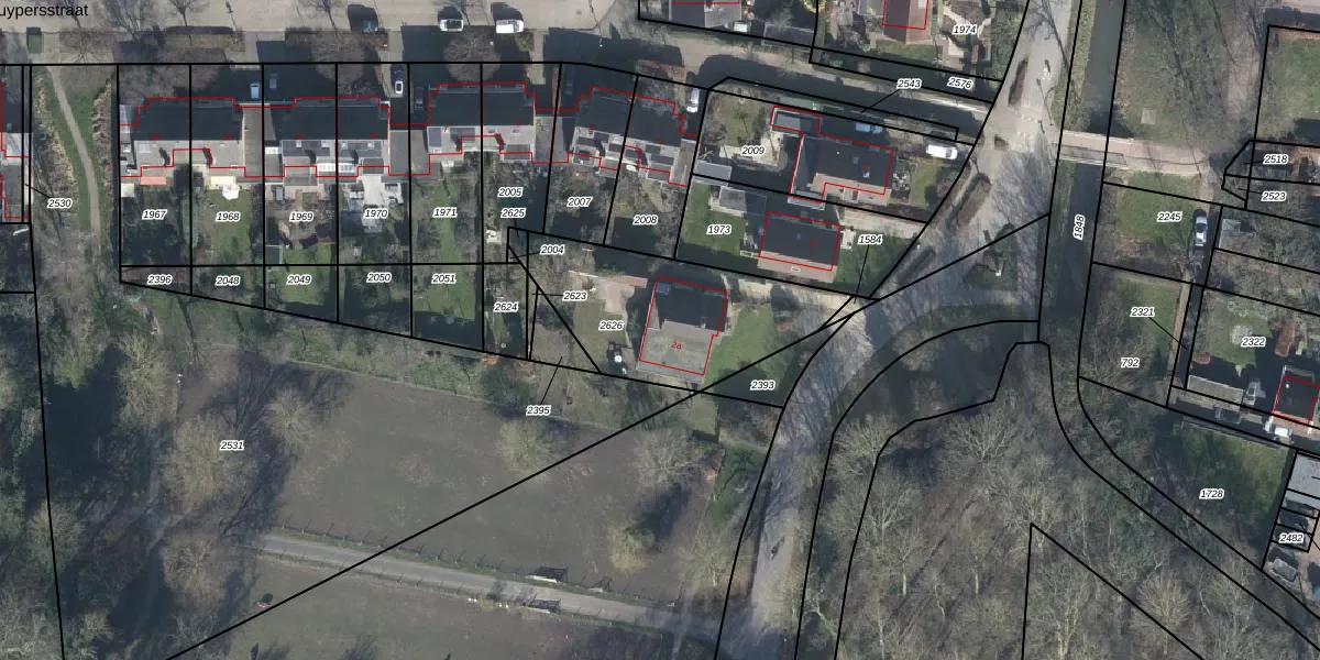 Het perceel waarop het adres ligt is WIJ01-E-2626. De afkorting 'WIJ01' staat voor kadastrale gemeente Wijk bij Duurstede. Het perceel is kleiner dan gemiddeld in Wijk bij Duurstede. Het perceel is 677 m² groot, terwijl het gemiddelde ligt op 2727,51 m². Het kleinste perceel in de kadastrale gemeente is 1 m² groot. De grootste perceeloppervlakte is 64,6 ha. Er zijn geen andere adressen aanwezig op het perceel. In de Basisregistratie Kadaster (BRK) werden de grenzen van het perceel geregistreerd op 07-12-2005.
