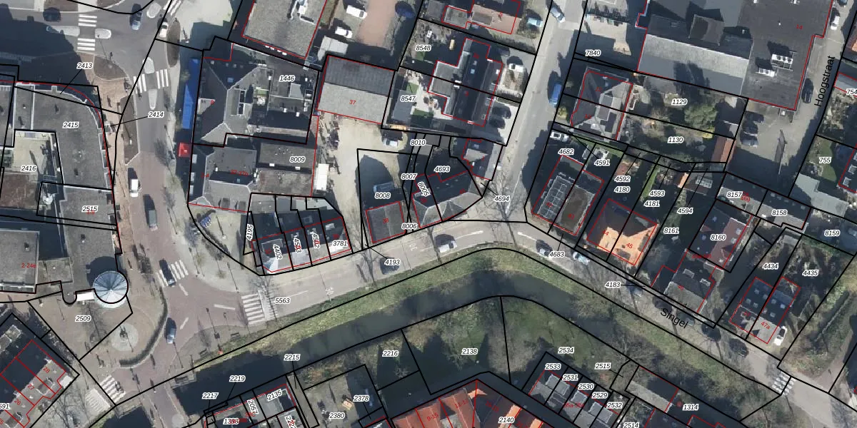 Het perceel waarop Singel 39 staat heeft een oppervlakte van 102 m². Dit is een middelgroot perceel. De perceeloppervlakte wordt geregistreerd door het Kadaster. Gedetailleerde informatie over de maten van dit perceel kunt u vinden in het rapport Kadastrale kaart met maatvoering van Singel 39.