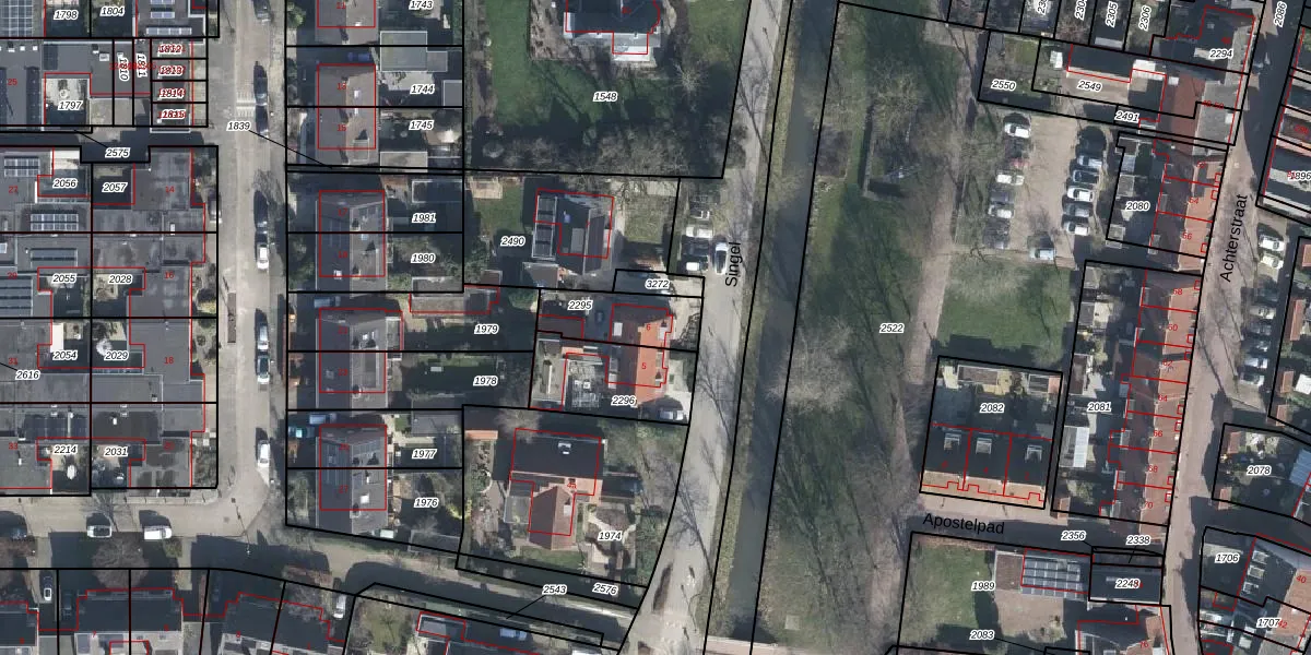 Gebruik de zoekbalk of klik op een perceel voor informatie over de adressen binnen dit perceel.