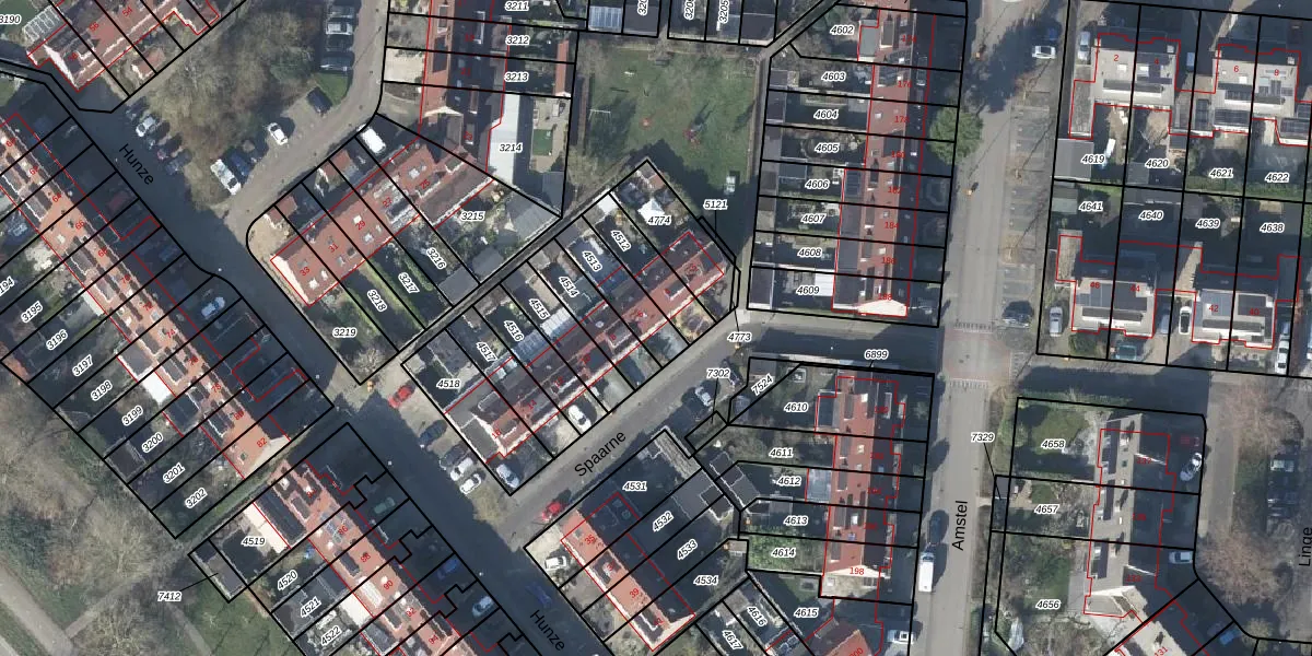 Gebruik de zoekbalk of klik op een perceel voor informatie over de adressen binnen dit perceel.