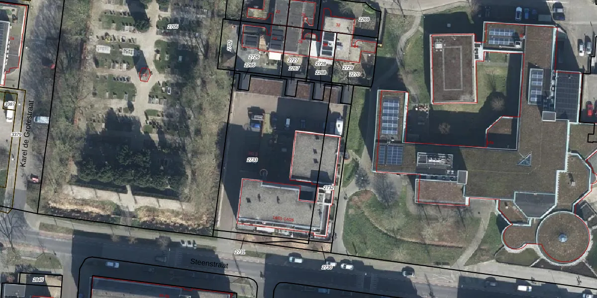 Het perceel waarop Steenstraat 14-20 staat heeft een oppervlakte van 1666 m². Dit is een zeer groot perceel. De perceeloppervlakte wordt geregistreerd door het Kadaster. Gedetailleerde informatie over de maten van dit perceel kunt u vinden in het rapport Kadastrale kaart met maatvoering van Steenstraat 14-20.