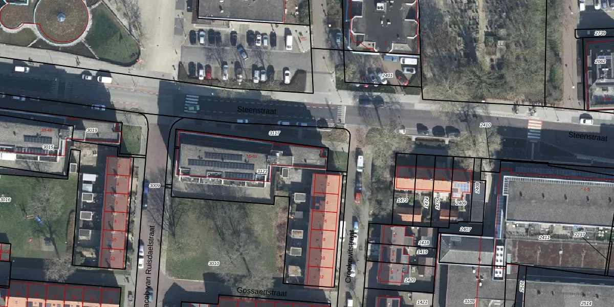 Het perceel waarop Steenstraat 17 staat heeft een oppervlakte van 1534 m². Dit is een zeer groot perceel. De perceeloppervlakte wordt geregistreerd door het Kadaster. Gedetailleerde informatie over de maten van dit perceel kunt u vinden in het rapport Kadastrale kaart met maatvoering van Steenstraat 17.