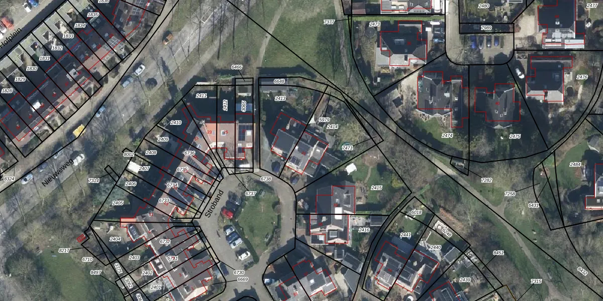 Gebruik de zoekbalk of klik op een perceel voor informatie over de adressen binnen dit perceel.