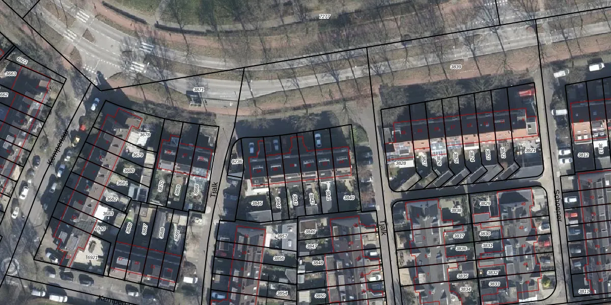 Gebruik de zoekbalk of klik op een perceel voor informatie over de adressen binnen dit perceel.