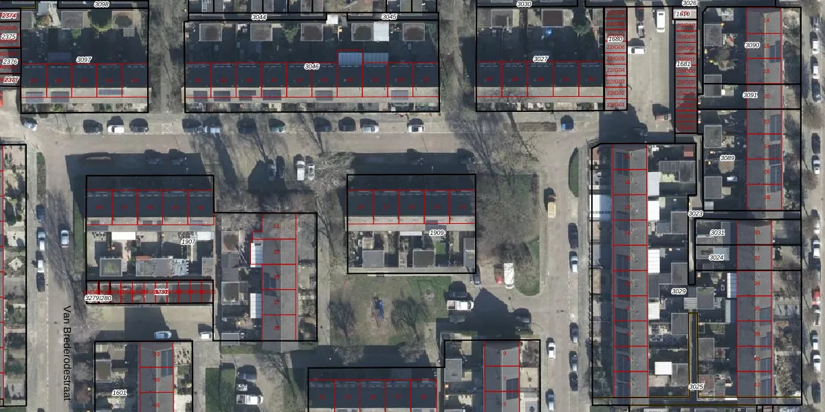 Van Brederodestraat 15 is gelegen op kadastraal perceel WIJ01E1909. Deze kadastrale aanduiding is uniek en wordt gebruikt door het Kadaster om eigendomsrechten en andere zakelijke rechten vast te leggen. Het perceel maakt onderdeel uit van de kadastrale gemeente Wijk bij Duurstede.