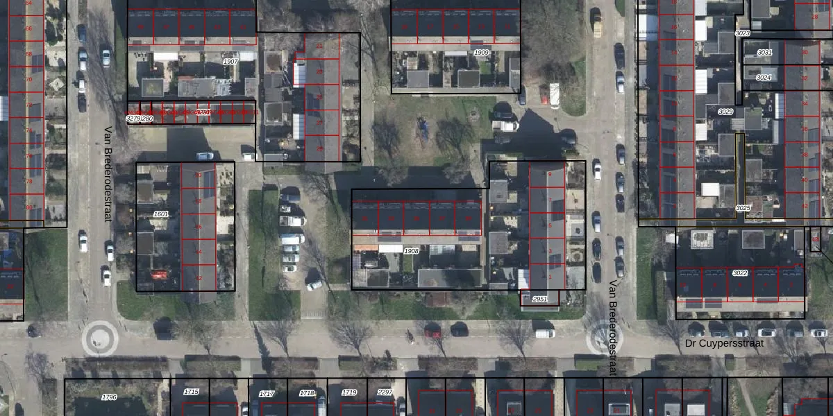 Het perceel waarop Van Brederodestraat 35 staat heeft een oppervlakte van 1523 m². Dit is een zeer groot perceel. De perceeloppervlakte wordt geregistreerd door het Kadaster. Gedetailleerde informatie over de maten van dit perceel kunt u vinden in het rapport Kadastrale kaart met maatvoering van Van Brederodestraat 35.