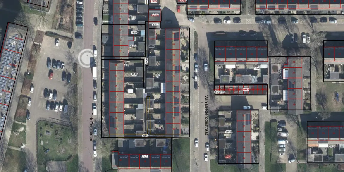Van Brederodestraat 72 is gelegen op kadastraal perceel WIJ01E3232. Deze kadastrale aanduiding is uniek en wordt gebruikt door het Kadaster om eigendomsrechten en andere zakelijke rechten vast te leggen. Het perceel maakt onderdeel uit van de kadastrale gemeente Wijk bij Duurstede.