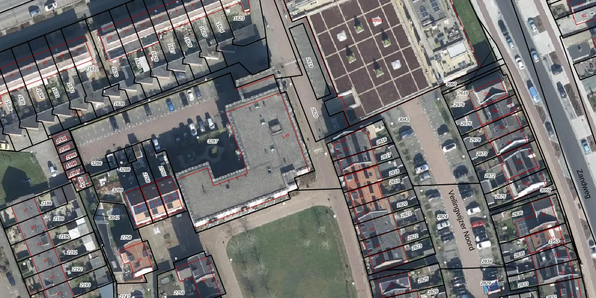 Het perceel waarop Veilingmeester 1 staat heeft een oppervlakte van 2315 m². Dit is een zeer groot perceel. De perceeloppervlakte wordt geregistreerd door het Kadaster. Gedetailleerde informatie over de maten van dit perceel kunt u vinden in het rapport Kadastrale kaart met maatvoering van Veilingmeester 1.
