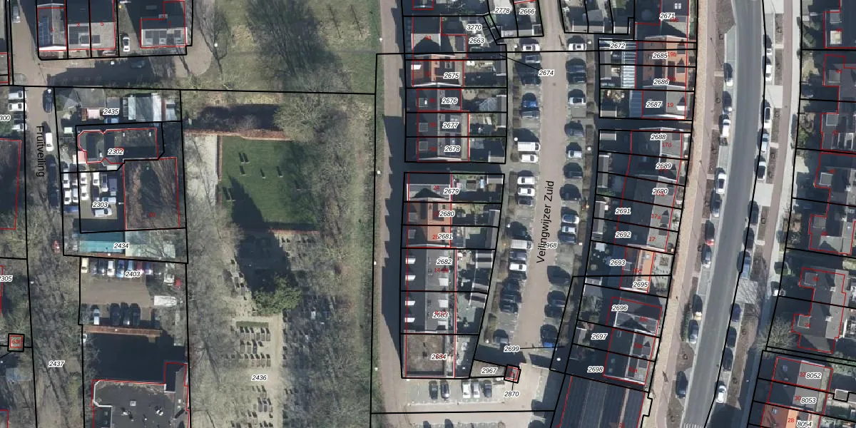 Gebruik de zoekbalk of klik op een perceel voor informatie over de adressen binnen dit perceel.