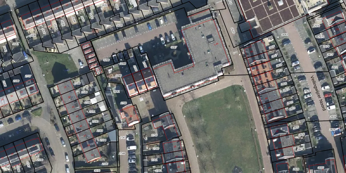 Het perceel waarop Veilingmeester 35 staat heeft een oppervlakte van 2315 m². Dit is een zeer groot perceel. De perceeloppervlakte wordt geregistreerd door het Kadaster. Gedetailleerde informatie over de maten van dit perceel kunt u vinden in het rapport Kadastrale kaart met maatvoering van Veilingmeester 35.