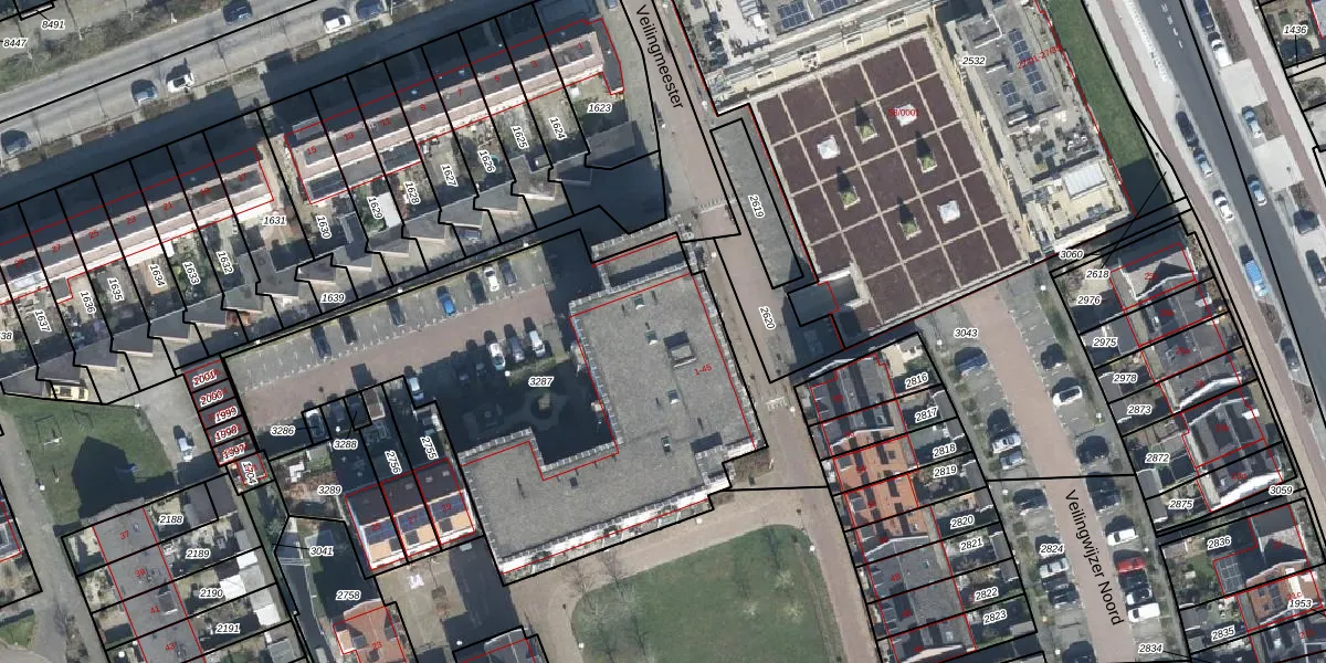 Het perceel waarop Veilingmeester 45 staat heeft een oppervlakte van 2315 m². Dit is een zeer groot perceel. De perceeloppervlakte wordt geregistreerd door het Kadaster. Gedetailleerde informatie over de maten van dit perceel kunt u vinden in het rapport Kadastrale kaart met maatvoering van Veilingmeester 45.