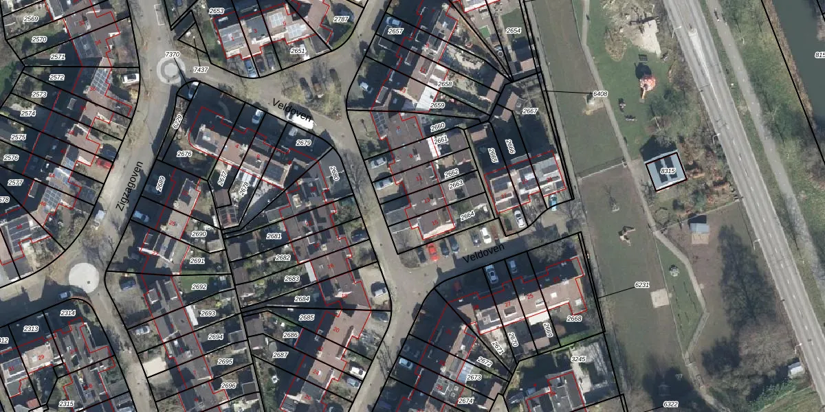Veldoven 13 is gelegen op kadastraal perceel WIJ01C2663. Deze kadastrale aanduiding is uniek en wordt gebruikt door het Kadaster om eigendomsrechten en andere zakelijke rechten vast te leggen. Het perceel maakt onderdeel uit van de kadastrale gemeente Wijk bij Duurstede.
