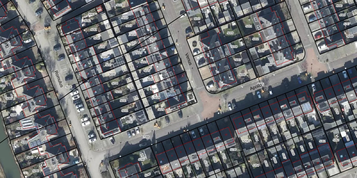 Het perceel waarop Venus 3 staat heeft een oppervlakte van 156 m². Dit is een middelgroot perceel. De perceeloppervlakte wordt geregistreerd door het Kadaster. Gedetailleerde informatie over de maten van dit perceel kunt u vinden in het rapport Kadastrale kaart met maatvoering van Venus 3.