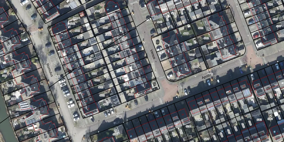 Het perceel waarop Venus 5 staat heeft een oppervlakte van 156 m². Dit is een middelgroot perceel. De perceeloppervlakte wordt geregistreerd door het Kadaster. Gedetailleerde informatie over de maten van dit perceel kunt u vinden in het rapport Kadastrale kaart met maatvoering van Venus 5.