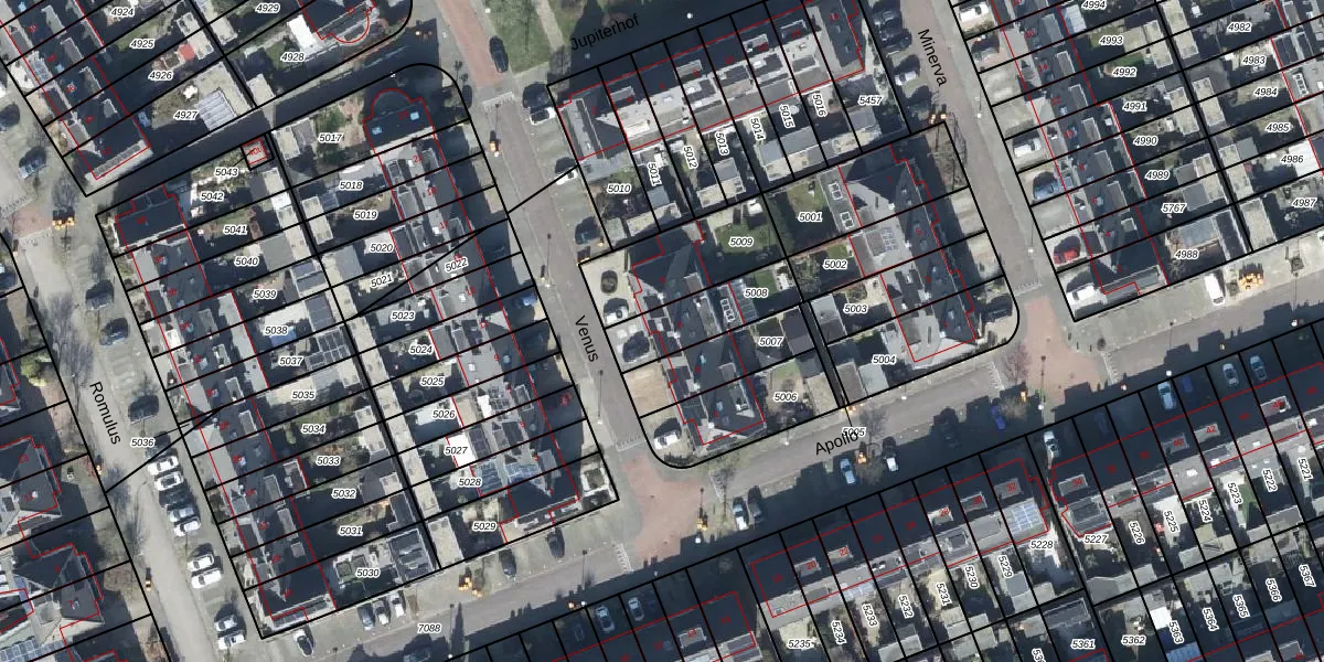 Het perceel waarop Venus 6 staat heeft een oppervlakte van 214 m². Dit is een middelgroot perceel. De perceeloppervlakte wordt geregistreerd door het Kadaster. Gedetailleerde informatie over de maten van dit perceel kunt u vinden in het rapport Kadastrale kaart met maatvoering van Venus 6.