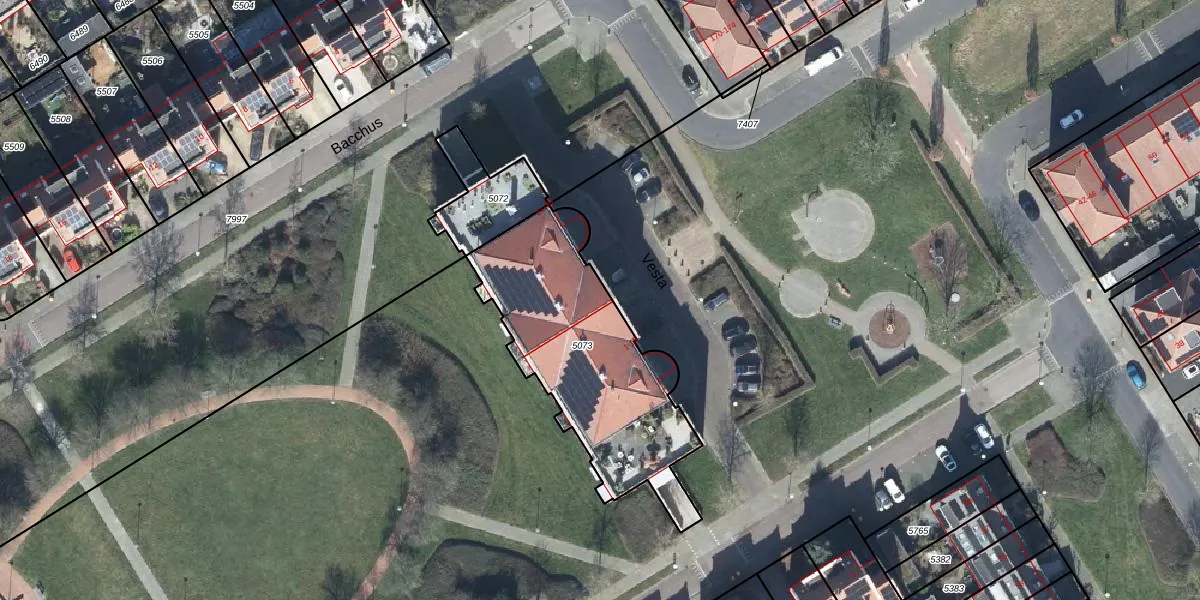Het perceel waarop Vesta 21 staat heeft een oppervlakte van 922 m². Dit is een groot perceel. De perceeloppervlakte wordt geregistreerd door het Kadaster. Gedetailleerde informatie over de maten van dit perceel kunt u vinden in het rapport Kadastrale kaart met maatvoering van Vesta 21.