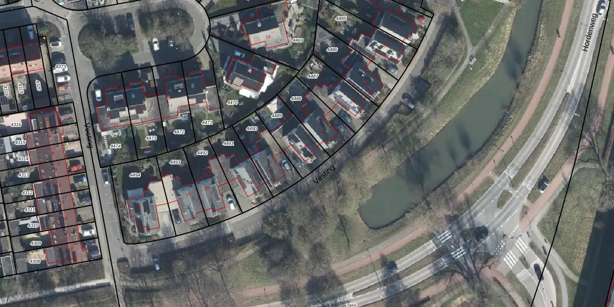 Het perceel waarop Vesting 35 staat heeft een oppervlakte van 274 m². Dit is een middelgroot perceel. De perceeloppervlakte wordt geregistreerd door het Kadaster. Gedetailleerde informatie over de maten van dit perceel kunt u vinden in het rapport Kadastrale kaart met maatvoering van Vesting 35.
