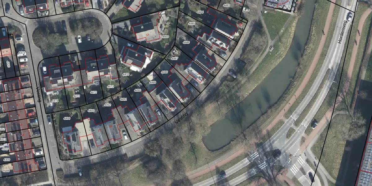 Het perceel waarop Vesting 37 staat heeft een oppervlakte van 274 m². Dit is een middelgroot perceel. De perceeloppervlakte wordt geregistreerd door het Kadaster. Gedetailleerde informatie over de maten van dit perceel kunt u vinden in het rapport Kadastrale kaart met maatvoering van Vesting 37.