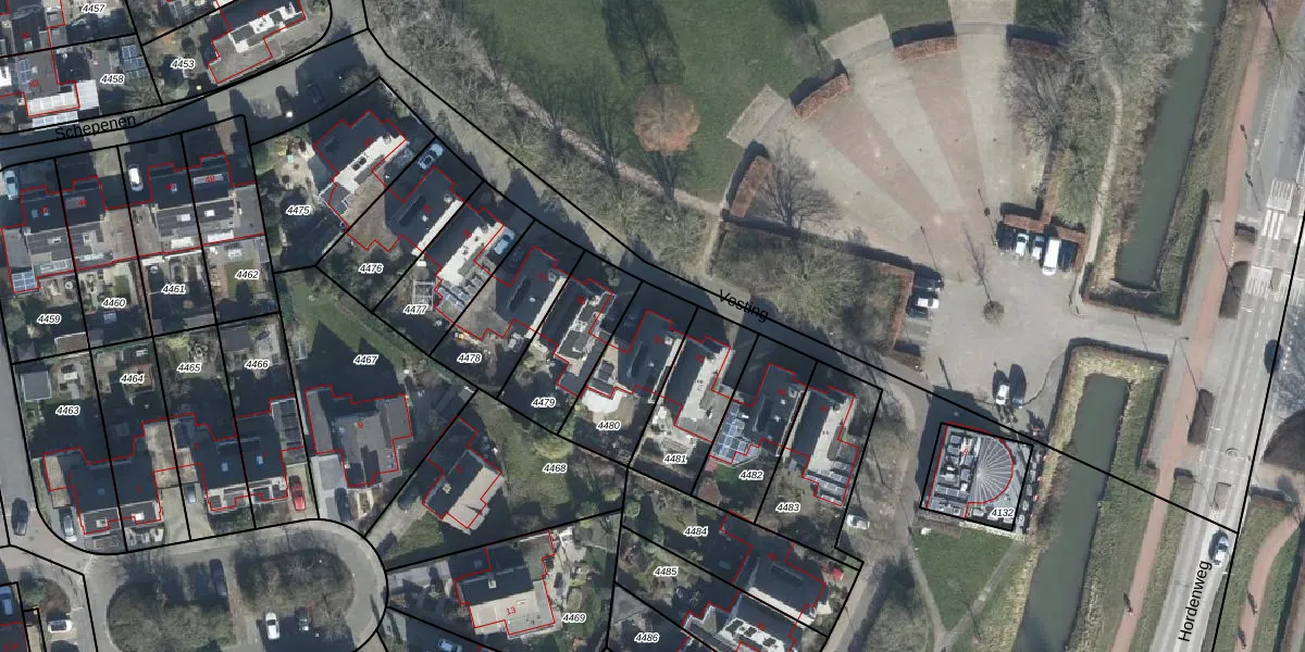 Het perceel waarop Vesting 53 staat heeft een oppervlakte van 280 m². Dit is een middelgroot perceel. De perceeloppervlakte wordt geregistreerd door het Kadaster. Gedetailleerde informatie over de maten van dit perceel kunt u vinden in het rapport Kadastrale kaart met maatvoering van Vesting 53.