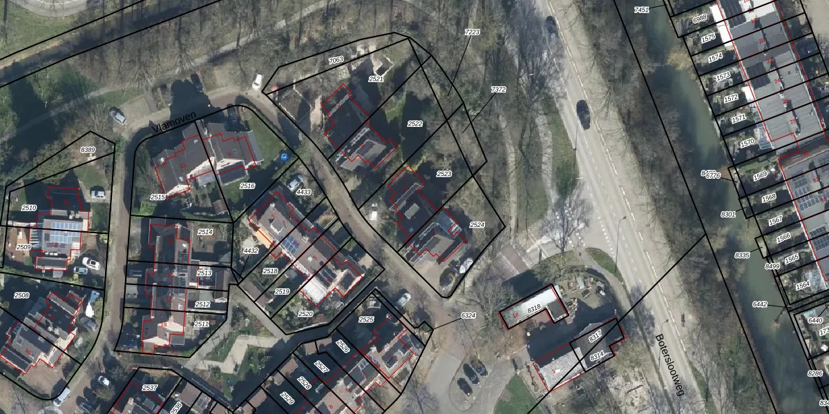 Gebruik de zoekbalk of klik op een perceel voor informatie over de adressen binnen dit perceel.