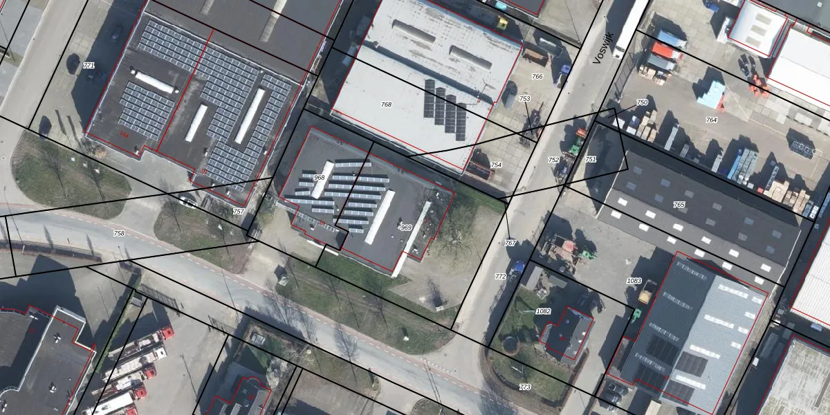 Gebruik de zoekbalk of klik op een perceel voor informatie over de adressen binnen dit perceel.