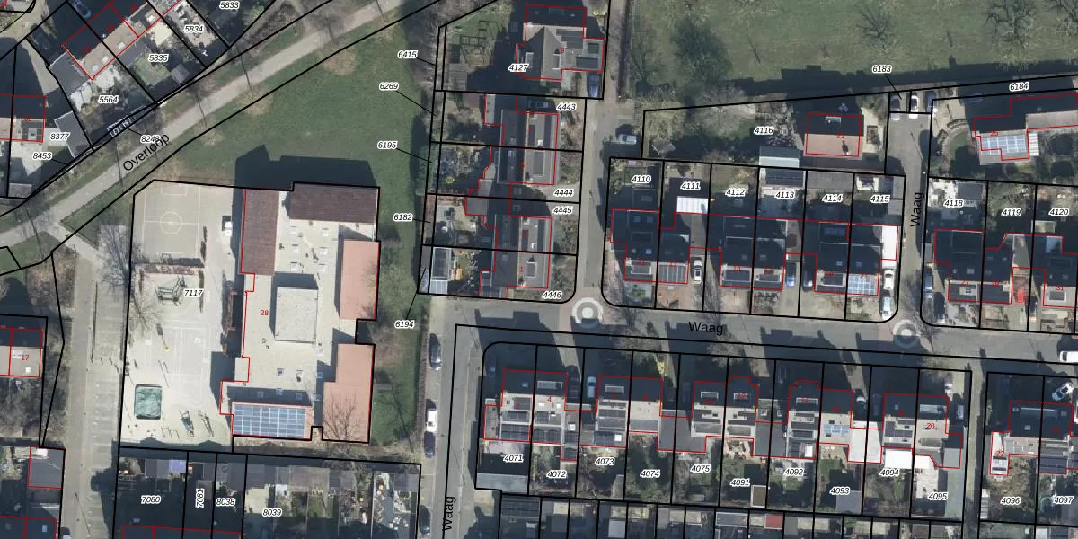 Het perceel waarop Waag 1 staat heeft een oppervlakte van 239 m². Dit is een middelgroot perceel. De perceeloppervlakte wordt geregistreerd door het Kadaster. Gedetailleerde informatie over de maten van dit perceel kunt u vinden in het rapport Kadastrale kaart met maatvoering van Waag 1.