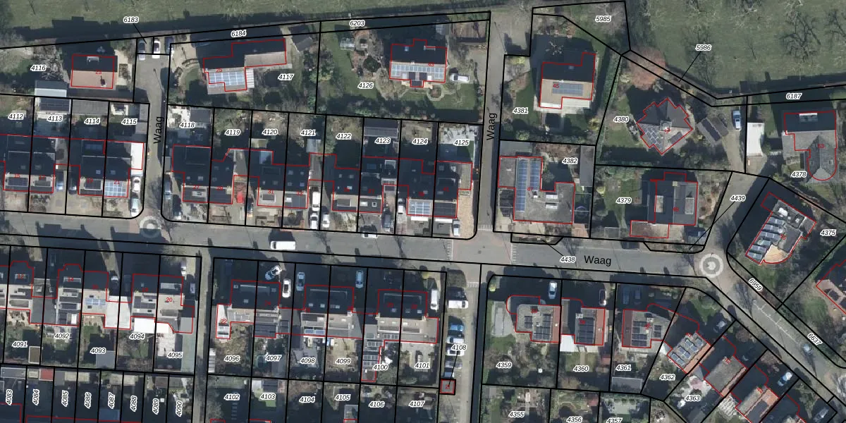 Gebruik de zoekbalk of klik op een perceel voor informatie over de adressen binnen dit perceel.