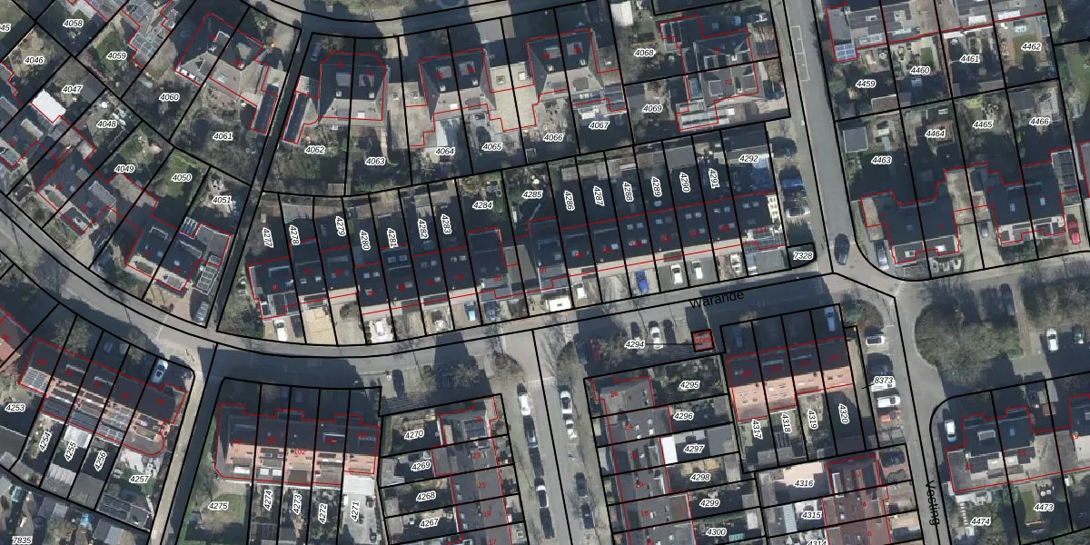 Gebruik de zoekbalk of klik op een perceel voor informatie over de adressen binnen dit perceel.