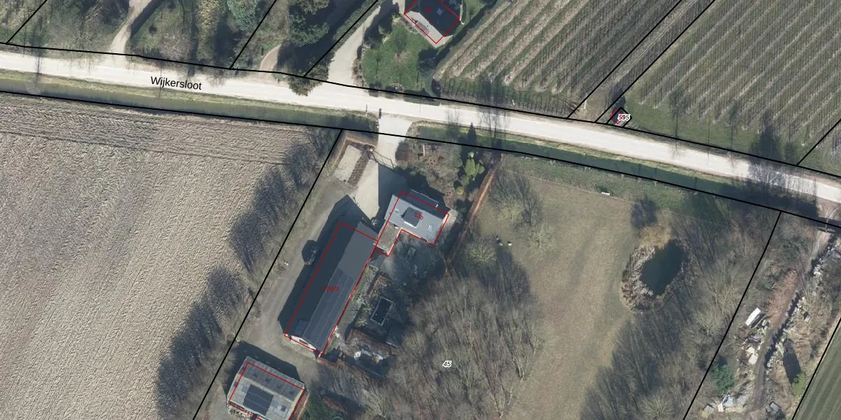 Het adres is gelegen op perceel 45 in de sectie F en de kadastrale gemeente Wijk bij Duurstede. De kadastrale aanduiding is aldus WIJ01-F-45. De oppervlakte van het perceel is 1,1 ha. Dat is groter dan gemiddeld in Wijk bij Duurstede, waar de gemiddelde perceeloppervlakte op 2724,84 m² ligt. Het kleinste perceel in de kadastrale gemeente is 1 m² groot. De grootste perceeloppervlakte is 64,6 ha. Op het perceel liggen in totaal 2 adressen. In de Basisregistratie Kadaster (BRK) werden de grenzen van het perceel geregistreerd op 09-12-2008.