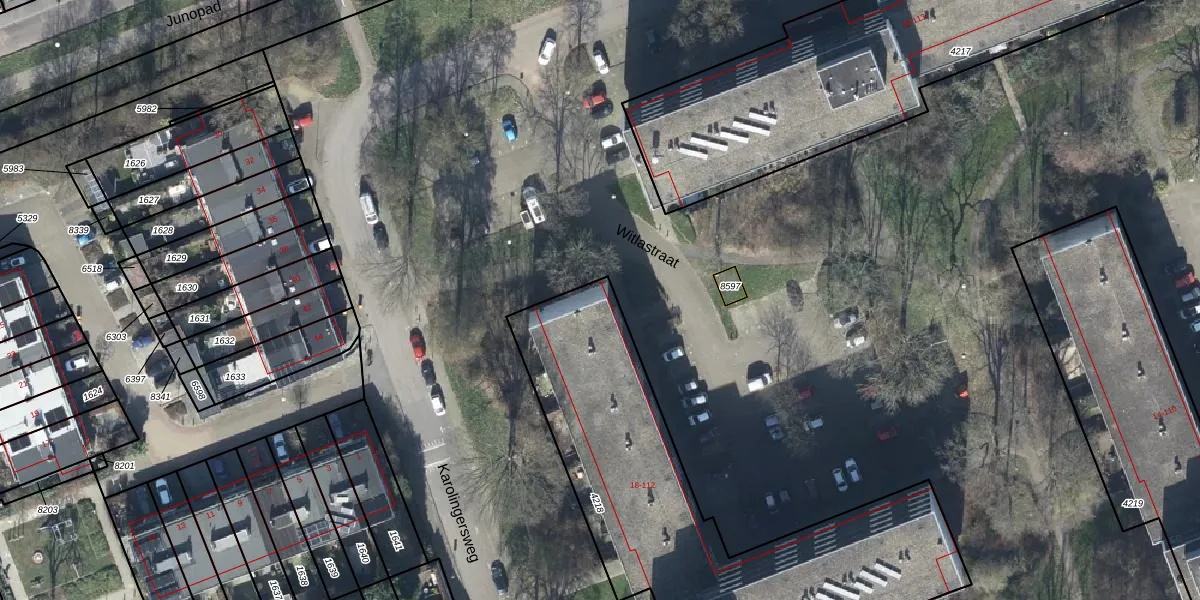 Het adres is gelegen op perceel 4218 in de sectie C en de kadastrale gemeente Wijk bij Duurstede. De kadastrale aanduiding is aldus WIJ01-C-4218. Het perceel is 1910 m² groot. Dat is kleiner dan de gemiddelde perceeloppervlakte in Wijk bij Duurstede, dat op 2727,51 m² ligt. Het grootste perceel in de kadastrale gemeente is 64,6 ha. Het kleinste perceel heeft een oppervlakte van 1 m². Er zijn 57 adressen aanwezig op het perceel. In de Basisregistratie Kadaster (BRK) werden de grenzen van het perceel geregistreerd op 25-11-2009.
