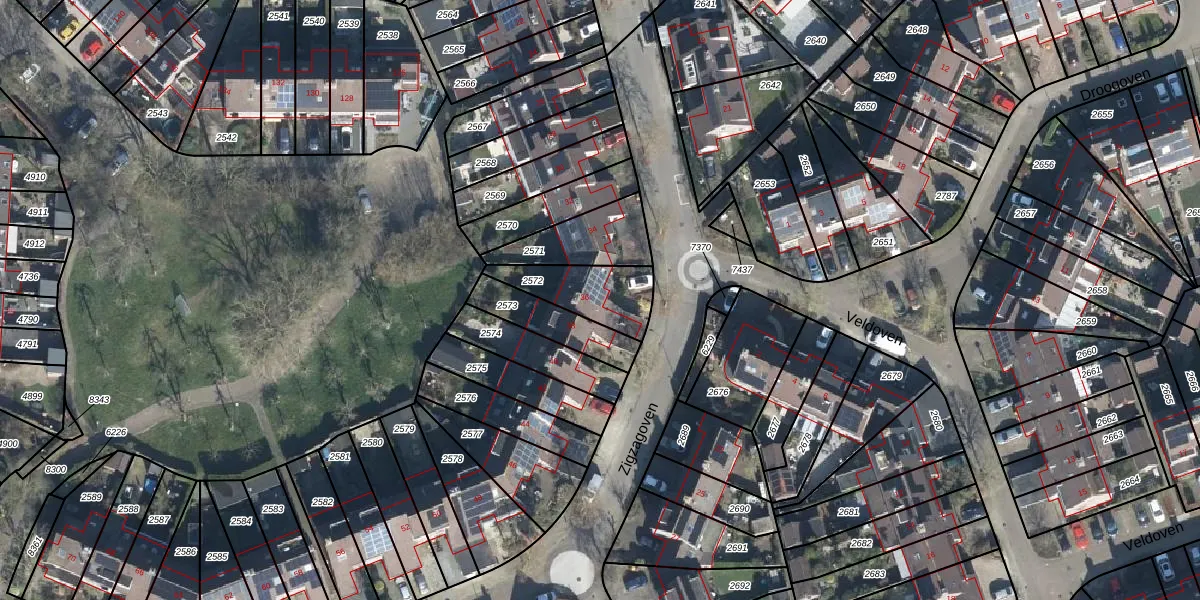 Gebruik de zoekbalk of klik op een perceel voor informatie over de adressen binnen dit perceel.