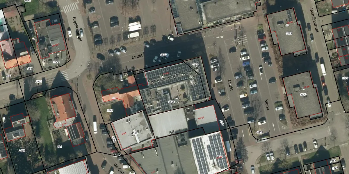 Het perceel waarop Markt 46-a staat heeft een oppervlakte van 866 m². Dit is een groot perceel. De perceeloppervlakte wordt geregistreerd door het Kadaster. Gedetailleerde informatie over de maten van dit perceel kunt u vinden in het rapport Kadastrale kaart met maatvoering van Markt 46-a.