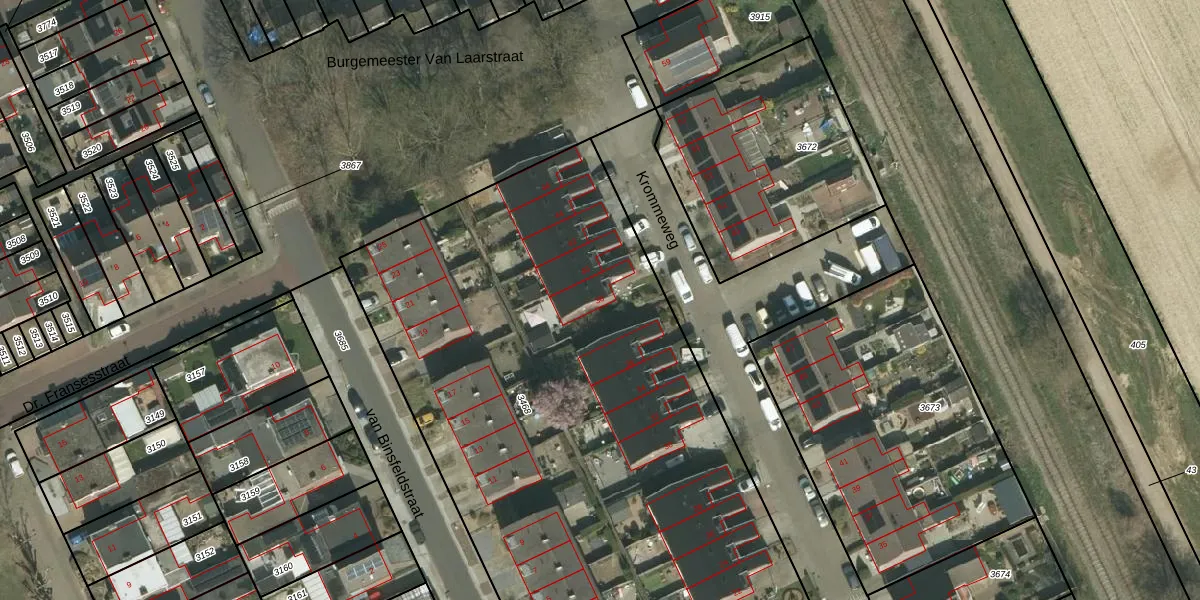 Het perceel waarop Krommeweg 38 staat heeft een oppervlakte van 4040 m². Dit is een zeer groot perceel. De perceeloppervlakte wordt geregistreerd door het Kadaster. Gedetailleerde informatie over de maten van dit perceel kunt u vinden in het rapport Kadastrale kaart met maatvoering van Krommeweg 38.