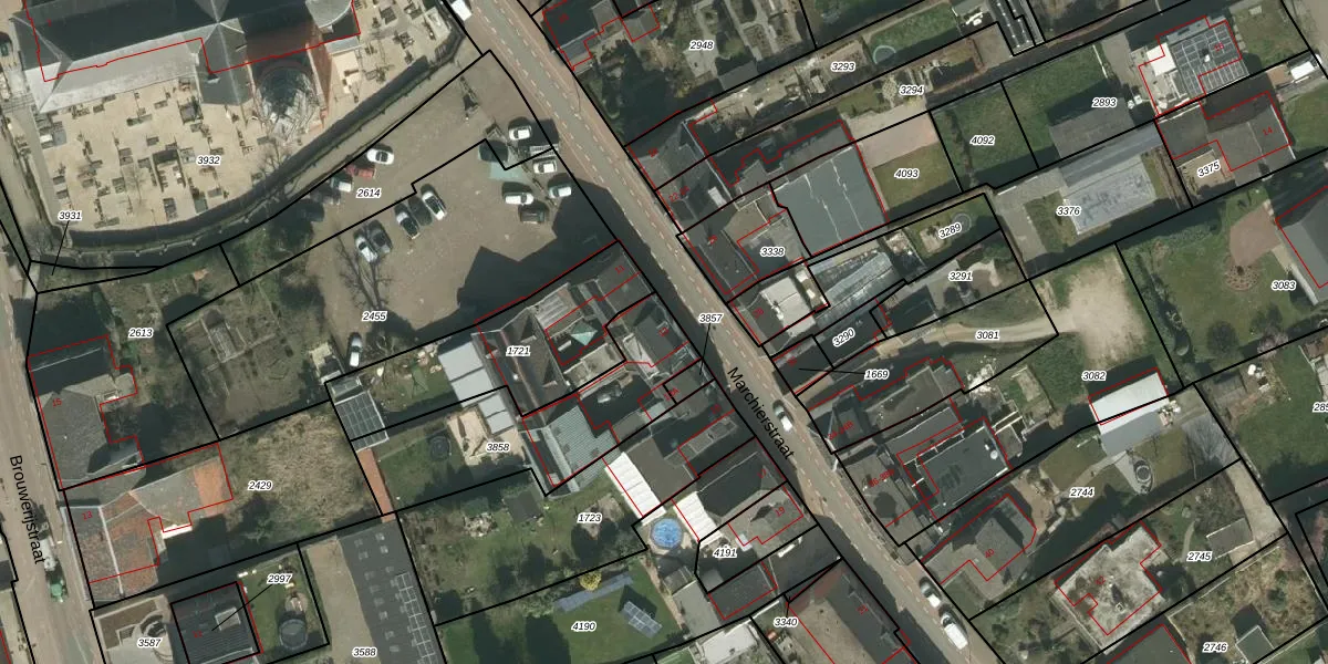Gebruik de zoekbalk of klik op een perceel voor informatie over de adressen binnen dit perceel.
