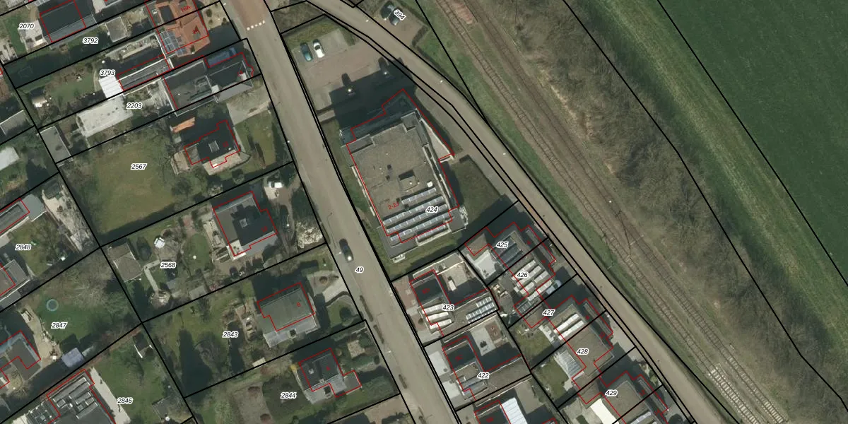 Het adres is gelegen op perceel 424 in de sectie J en de kadastrale gemeente Wijlre. De kadastrale aanduiding is aldus WRE01-J-424. Het perceel is kleiner dan gemiddeld in Wijlre. Het perceel is 1641 m² groot, terwijl het gemiddelde ligt op 3933,44 m². De grootste perceeloppervlakte in de kadastrale gemeente is 14,6 ha. De kleinste oppervlakte bedraagt 0 m². Er zijn 10 adressen aanwezig op het perceel. In de Basisregistratie Kadaster (BRK) werden de grenzen van het perceel geregistreerd op 24-11-2010.