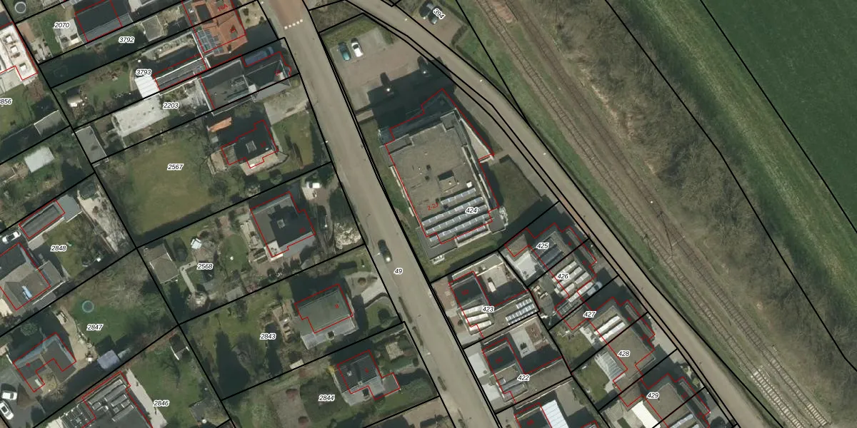 Het adres is gelegen op perceel 424 in de sectie J en de kadastrale gemeente Wijlre. De kadastrale aanduiding is aldus WRE01-J-424. Het perceel is kleiner dan gemiddeld in Wijlre. Het perceel is 1641 m² groot, terwijl het gemiddelde ligt op 3935,1 m². De grootste perceeloppervlakte in de kadastrale gemeente is 14,6 ha. De kleinste oppervlakte bedraagt 0 m². Er zijn 10 adressen aanwezig op het perceel. In de Basisregistratie Kadaster (BRK) werden de grenzen van het perceel geregistreerd op 24-11-2010.