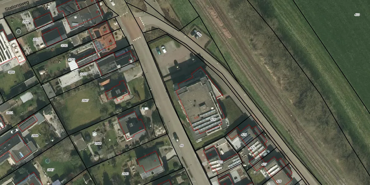 Het adres is gelegen op perceel 424 in de sectie J en de kadastrale gemeente Wijlre. De kadastrale aanduiding is aldus WRE01-J-424. Het perceel is kleiner dan gemiddeld in Wijlre. Het perceel is 1641 m² groot, terwijl het gemiddelde ligt op 3935,1 m². De grootste perceeloppervlakte in de kadastrale gemeente is 14,6 ha. De kleinste oppervlakte bedraagt 0 m². Op het perceel zijn 10 adressen aanwezig. In de Basisregistratie Kadaster (BRK) werden de grenzen van het perceel geregistreerd op 24-11-2010.