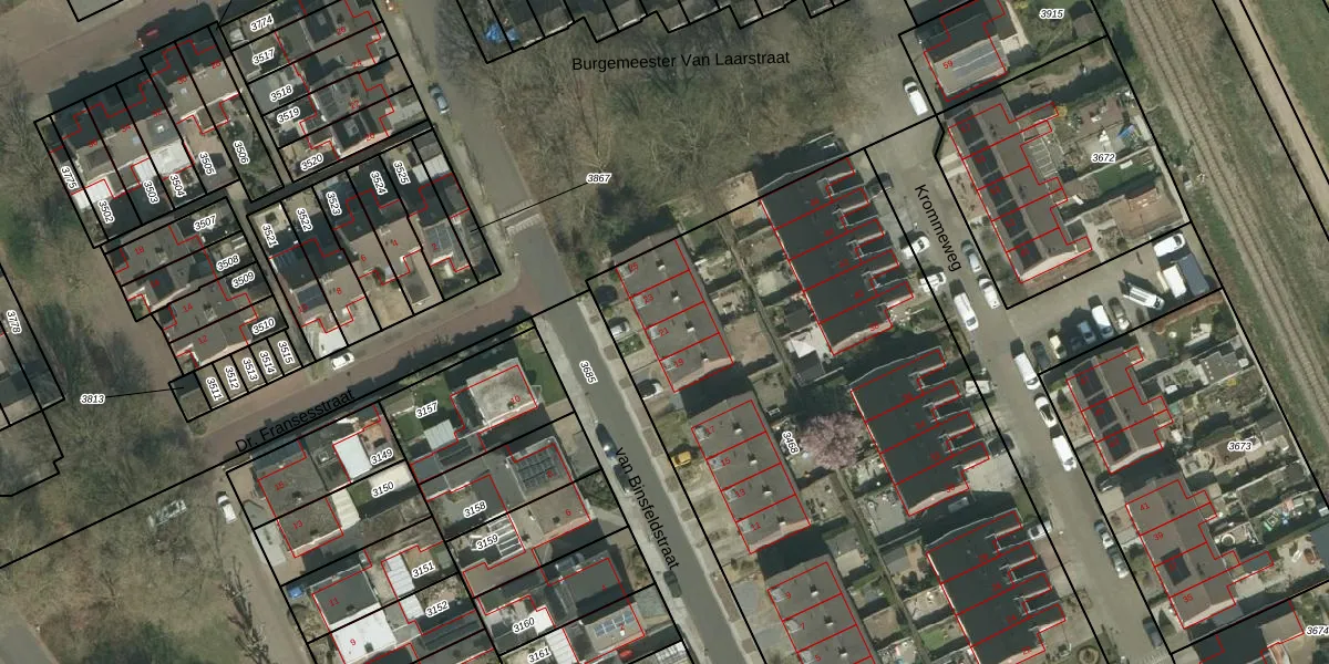 Het perceel waarop van Binsfeldstraat 21 staat heeft een oppervlakte van 4040 m². Dit is een zeer groot perceel. De perceeloppervlakte wordt geregistreerd door het Kadaster. Gedetailleerde informatie over de maten van dit perceel kunt u vinden in het rapport Kadastrale kaart met maatvoering van van Binsfeldstraat 21.