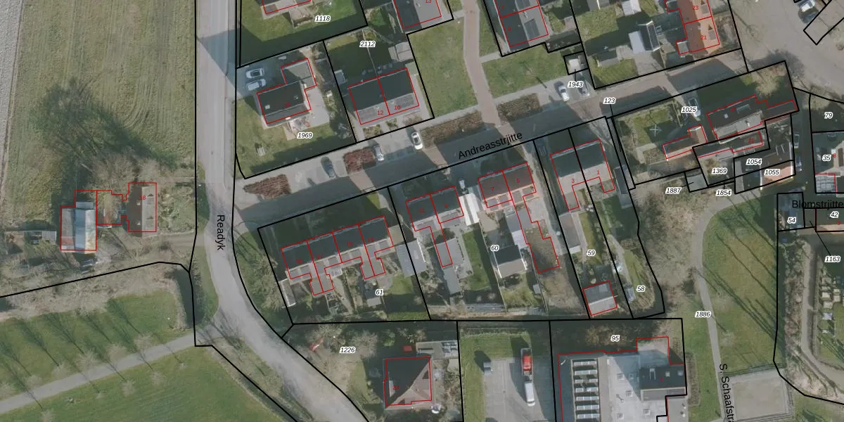 Het perceel waarop Andreasstrjitte 11 staat heeft een oppervlakte van 1375 m². Dit is een zeer groot perceel. De perceeloppervlakte wordt geregistreerd door het Kadaster. Gedetailleerde informatie over de maten van dit perceel kunt u vinden in het rapport Kadastrale kaart met maatvoering van Andreasstrjitte 11.