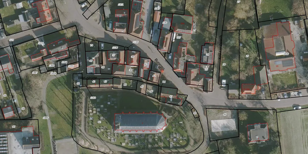Het perceel waarop Blomstrjitte 2 staat heeft een oppervlakte van 48 m². Dit is een klein perceel. De perceeloppervlakte wordt geregistreerd door het Kadaster. Gedetailleerde informatie over de maten van dit perceel kunt u vinden in het rapport Kadastrale kaart met maatvoering van Blomstrjitte 2.