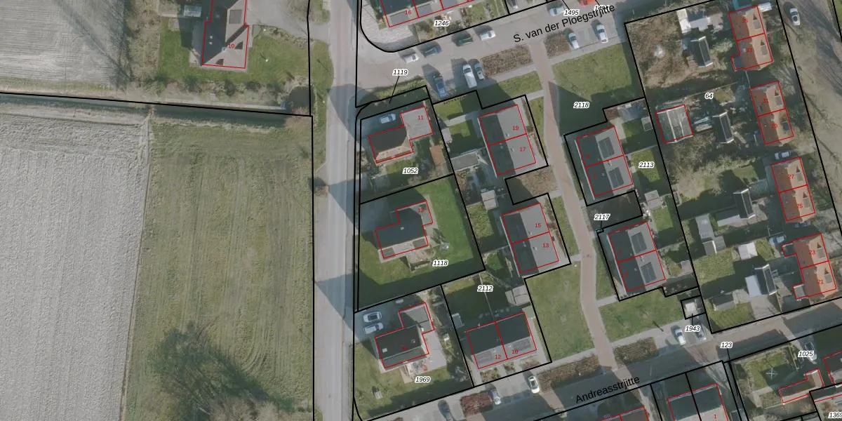 Gebruik de zoekbalk of klik op een perceel voor informatie over de adressen binnen dit perceel.
