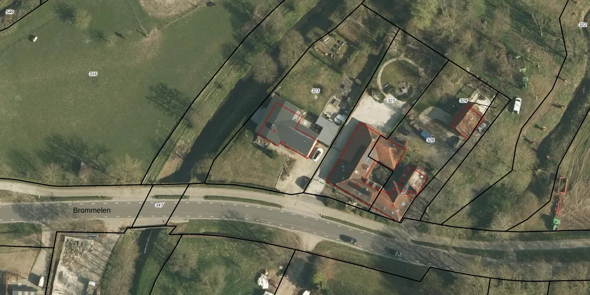 Het perceel waarop Brommelen 8 staat heeft een oppervlakte van 1922 m². Dit is een zeer groot perceel. De perceeloppervlakte wordt geregistreerd door het Kadaster. Gedetailleerde informatie over de maten van dit perceel kunt u vinden in het rapport Kadastrale kaart met maatvoering van Brommelen 8.