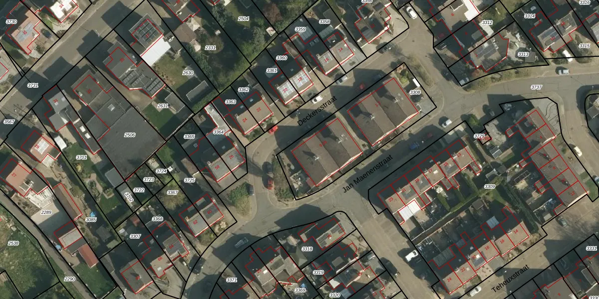 Deckersstraat 13 is gelegen op kadastraal perceel WNR00A3308. Deze kadastrale aanduiding is uniek en wordt gebruikt door het Kadaster om eigendomsrechten en andere zakelijke rechten vast te leggen. Het perceel maakt onderdeel uit van de kadastrale gemeente Wijnandsrade.