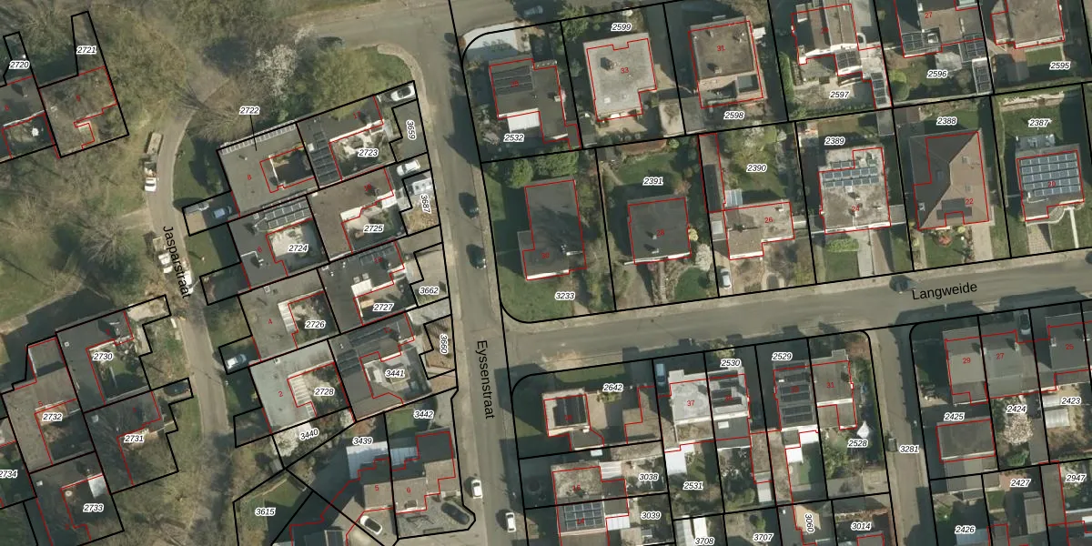 Langweide 30 is gelegen op kadastraal perceel WNR00A3233. Deze kadastrale aanduiding is uniek en wordt gebruikt door het Kadaster om eigendomsrechten en andere zakelijke rechten vast te leggen. Het perceel maakt onderdeel uit van de kadastrale gemeente Wijnandsrade.