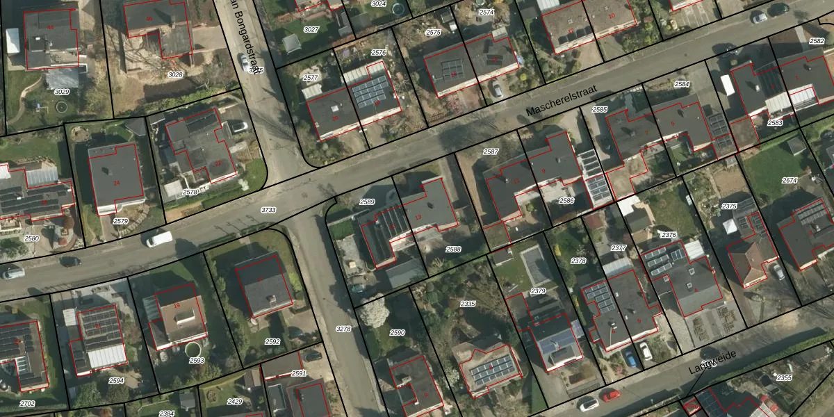 Het perceel waarop Mascherelstraat 13 staat heeft een oppervlakte van 408 m². Dit is een groot perceel. De perceeloppervlakte wordt geregistreerd door het Kadaster. Gedetailleerde informatie over de maten van dit perceel kunt u vinden in het rapport Kadastrale kaart met maatvoering van Mascherelstraat 13.