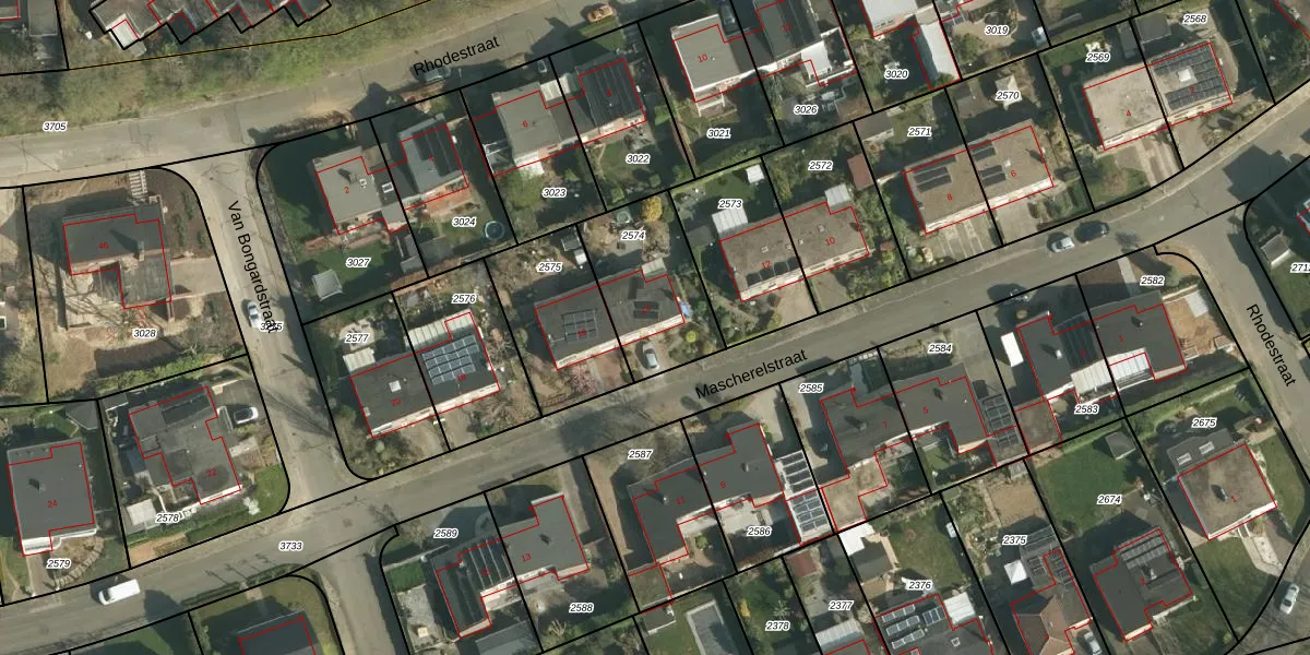 Het perceel waarop Mascherelstraat 14 staat heeft een oppervlakte van 390 m². Dit is een groot perceel. De perceeloppervlakte wordt geregistreerd door het Kadaster. Gedetailleerde informatie over de maten van dit perceel kunt u vinden in het rapport Kadastrale kaart met maatvoering van Mascherelstraat 14.